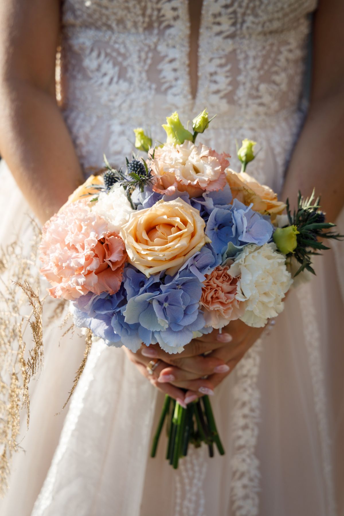 Najprościej mówiąc – takie, które poradzą sobie w trudnych warunkach, jakie mogą pojawić się podczas ceremonii ślubnej i wesela. Bukiet powinien być wykonany z trwałych kwiatów, odpornych na zmiany temperatur i czasowy brak dostępu do wody, a przy tym pięknie się prezentować. Im bardziej szlachetne i droższe kwiaty wybierzecie, tym większa szansa, że bukiet przetrwa cały dzień i nadal będzie wyglądał zachwycająco – zarówno podczas ślubu i wesela, jak i sesji zdjęciowej następnego dnia.