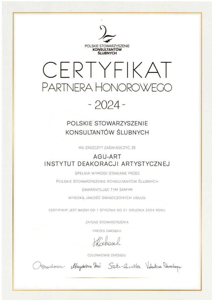 3. Certyfikat ukończenia szkolenia Wedding Planner w Akademia Perfect Day
