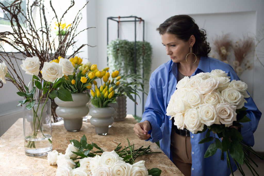 Doświadczenie w florystyce zdobyłam w Szkole Florystycznej Moniki Bębenek „Kwitnące Horyzonty”, gdzie uzyskałam tytuł Mistrza Florysty. To jedno z najważniejszych osiągnięć w mojej karierze, które otworzyło mi drzwi do realizacji większych i bardziej wymagających projektów. Inspirację czerpię także z pracy Gabi Prządki z Art Size, która pokazała, że design ślubny to nie tylko kwiaty, ale cała opowieść, tworzona harmonijnie i spójnie.